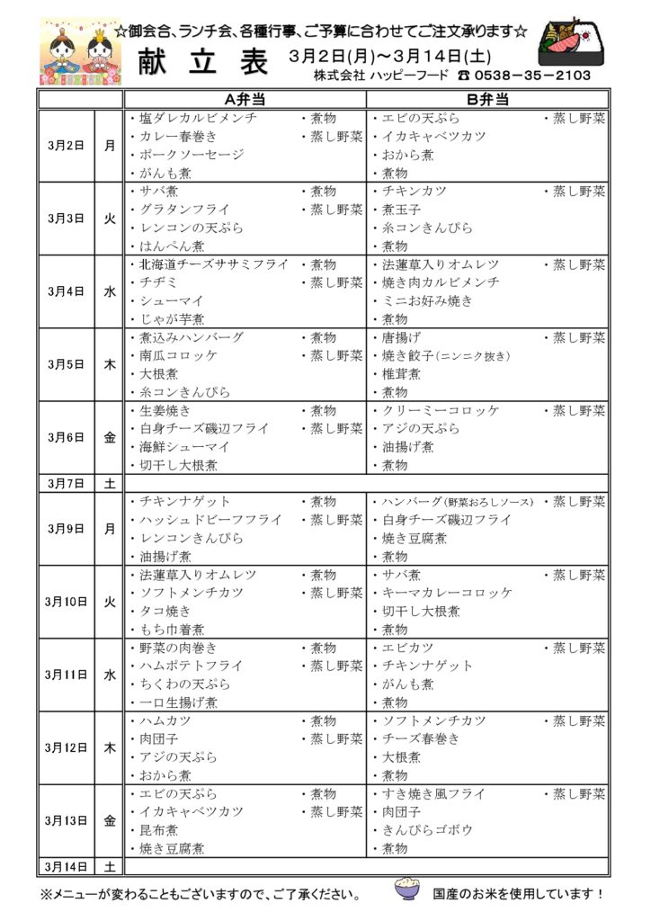 ハッピーフード~磐田市エリアで美味しい手作りお弁当を配達!~